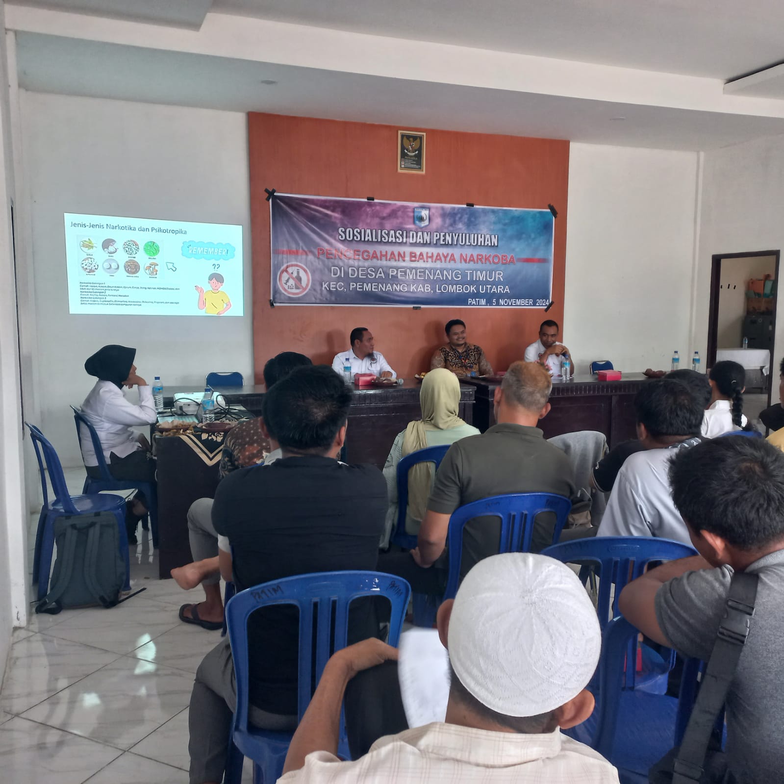 Lombok Utara, NTB – Dalam upaya mendukung program 100 Hari Presiden, yaitu Asta Cita serta memberantas dan meminimalisir peredaran Narkoba, Satuan Reserse Narkoba Polres Lombok Utara melaksanakan kegiatan sosialisasi Kampung Bebas Narkoba bertempat di Kantor Desa Pemenang Timur Desa Pemenang Timur Kecamatan Pemenang KLU. Selasa, 5/11/2024.