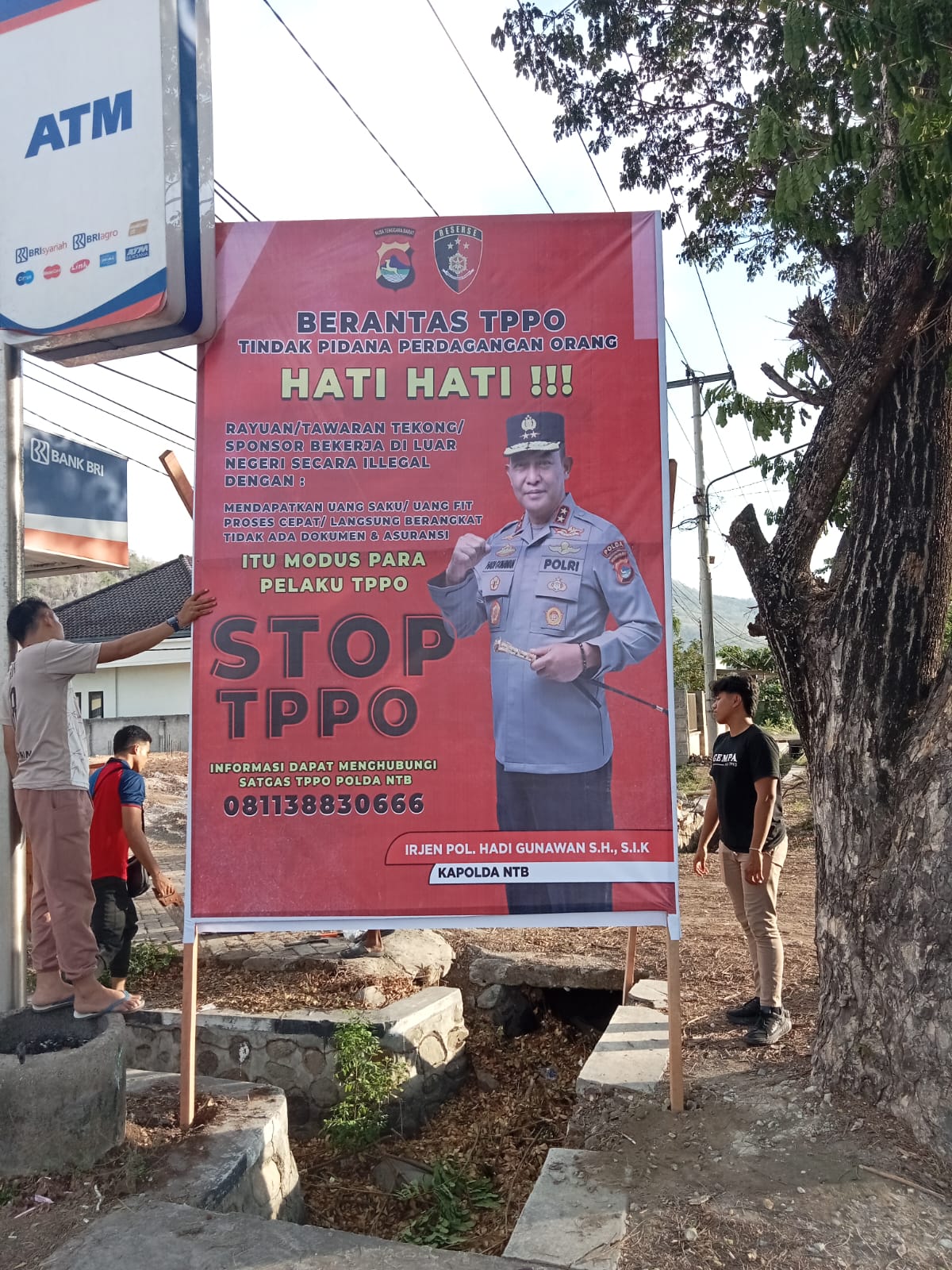 Imbauan waspada terhadap Tindak Pidana Perdagangan Orang (TPPO) dipasang di areal Pelabuhan Poto Tano, depan Polsek Seteluk, dan depan Polsek Jereweh sehingga mudah dilihat dan dibaca masyarakat.