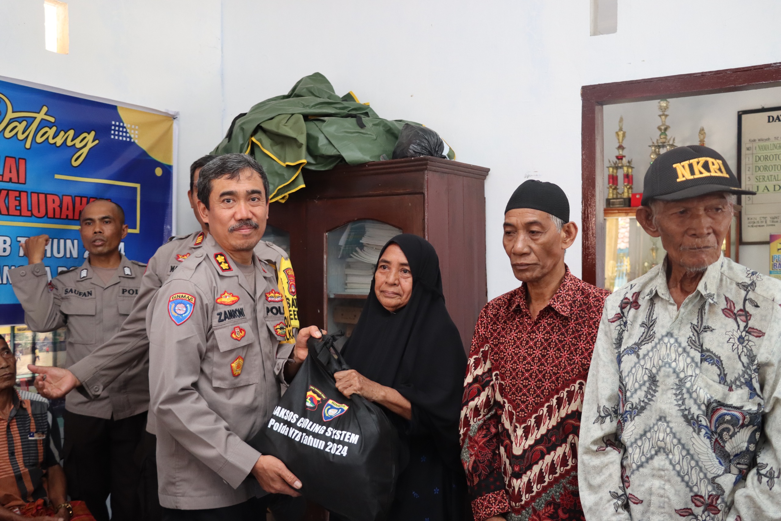 Nusantara cooling system yang dirangkaikan dengan pemberian 100 paket sembako kepada warga masyarakat penerima manfaat ini berlangsung di Aula Kantor Desa Dorotangga yang dihadiri Wadir Binmas Polda NTB AKBP H. Zamroni S.Pd.