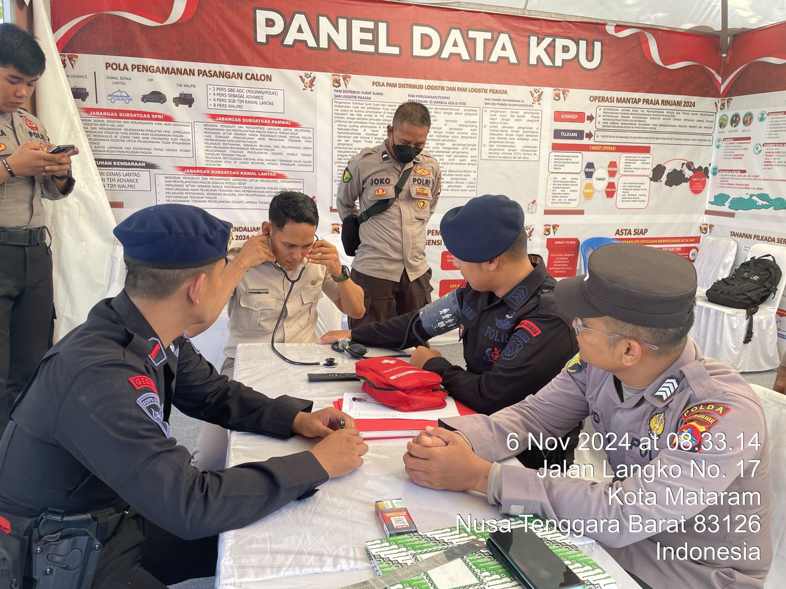 Pemeriksaan kesehatan dilakukan di sejumlah lokasi strategis, seperti Pos Pam Kantor KPU, Bawaslu Provinsi NTB, serta terhadap personel yang akan bertugas dalam pengamanan kampanye Pilkada.