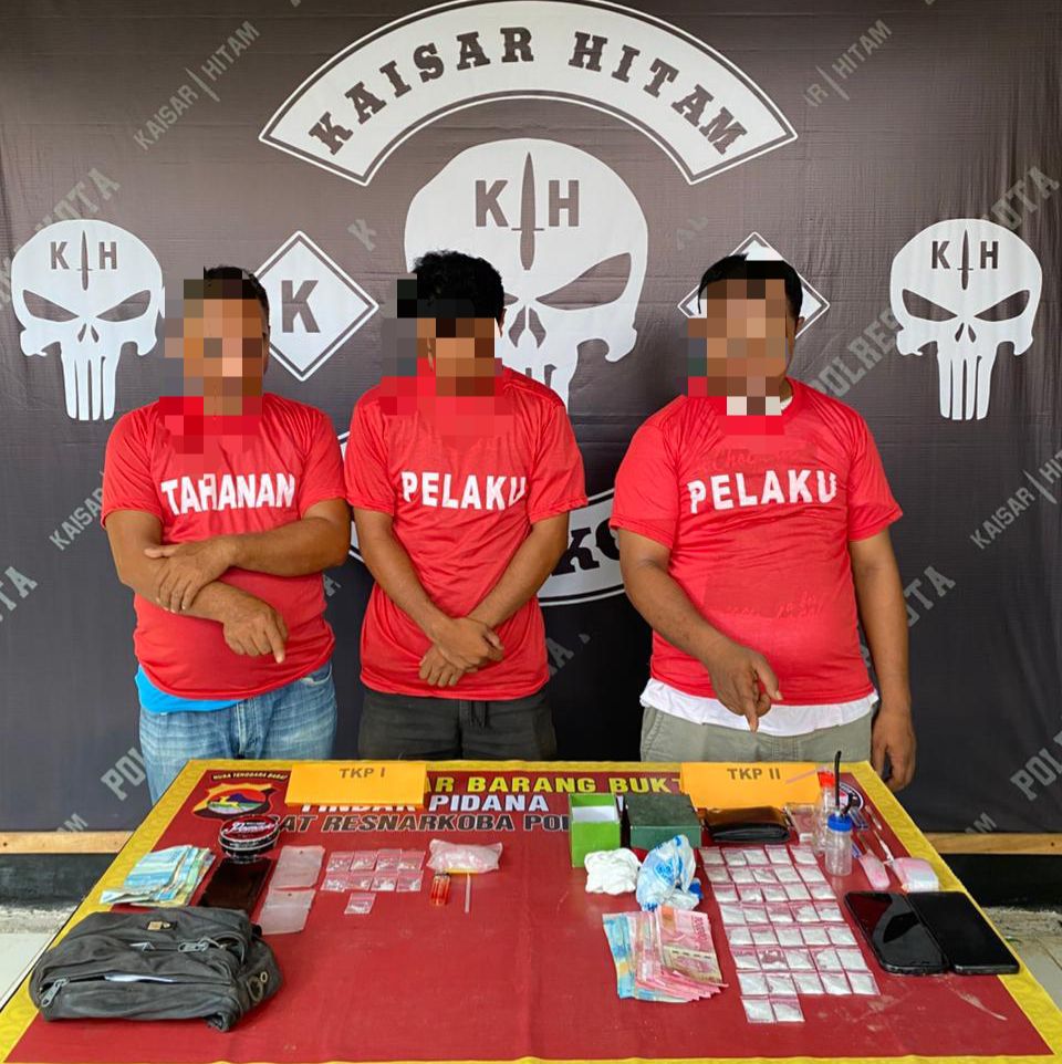 Dalam operasi pertama di Jalan Raya depan rumah seorang warga di Kelurahan Rabangodu Utara, Kecamatan Raba, Kota Bima, polisi mengamankan dua pria berinisial KA dan RM. Dari hasil penggeledahan, Tim Kaisar Hitam menemukan sembilan klip plastik berisi kristal yang diduga sabu, beberapa alat hisap, dan uang tunai sebesar Rp365.000.