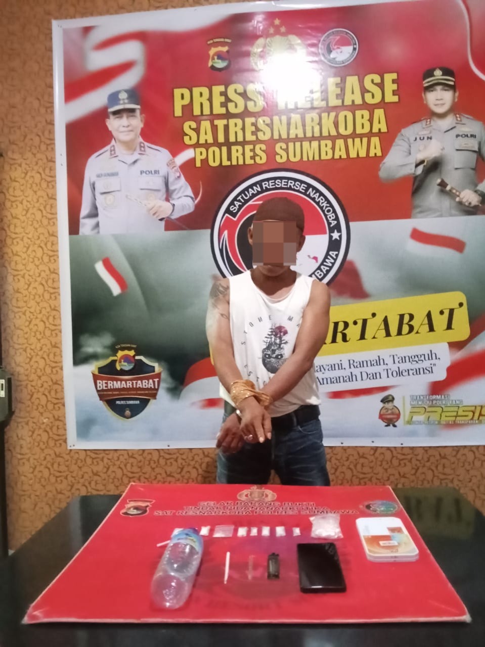 Kapolres Sumbawa AKBP Bagus Nyoman Gede Junaedi SH, S.IK, M.AP., melalui Kasat Narkoba AKP Tamrin S.Sos., membenarkan penangkapan tersebut, “Pelaku ditangkap berdasarkan laporan dari masyarakat yang menginformasikan bahwa ada seseorang yang diduga pelaku narkoba yang sedang menginap di salah satu homestay dan membawa narkoba jenis sabu-sabu” jelas Kasat.