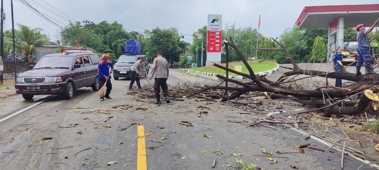 Pohon Tumbang Tutupi Jalan, Polsek Kayangan bersama Damkar Respon Cepat