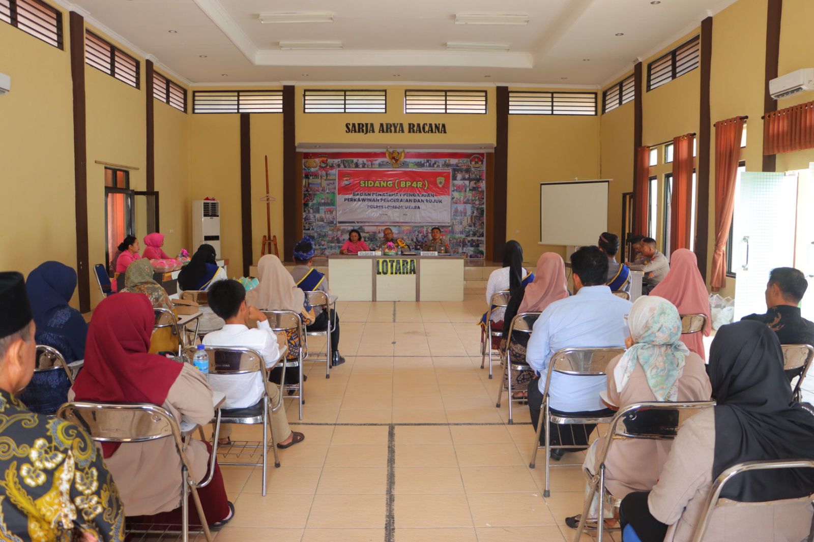 Wakapolres Lombok Utara, Kompol I Nyoman Adi Kurniawan, SH, yang didampingi oleh Wakil Ketua PC Bhayangkari, Ny. Armani Adi, Kabag SDM, AKP Agus Rachman SH., serta sejumlah pejabat utama dan anggota Bhayangkari. Kegiatan ini dihadiri oleh dua pasangan calon mempelai dan keluarganya untuk melaksanakan dan sebagai saksi dalam sidang BP4R.