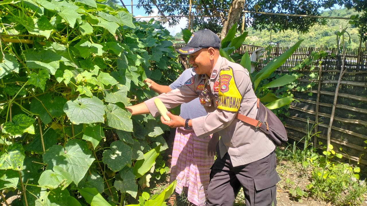 Dalam kesempatan tersebut, Bhabinkamtibmas melakukan pengecekan terhadap perkebunan milik Sdr. Rizal, seorang warga yang berprofesi sebagai pekerja swasta dan beralamat di RT 04/02, Kelurahan Sambinae. Lahan pekarangan yang dimanfaatkan oleh Rizal ditanami berbagai jenis tanaman pangan bergizi, antara lain timun, kacang panjang, jagung, pisang, serta tanaman jahe.