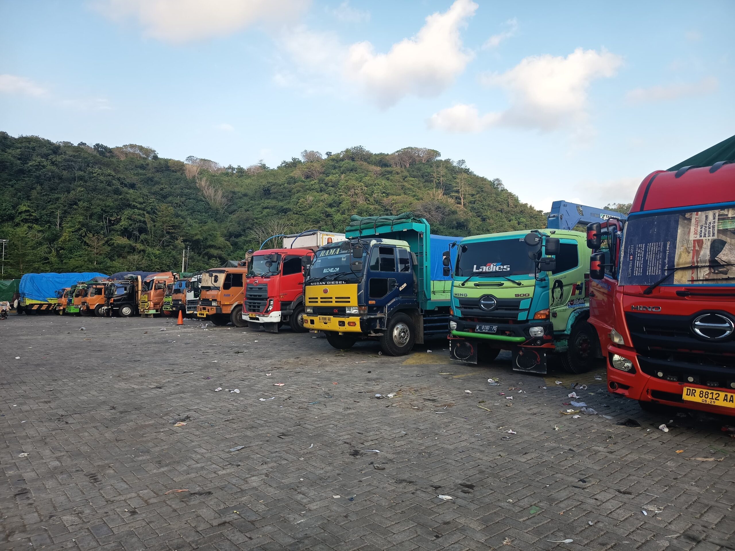 Kegiatan ini berfokus pada pengawasan antrean kendaraan, khususnya truk tronton, truk besar, dan truk sedang, yang menanti giliran untuk diberangkatkan.
