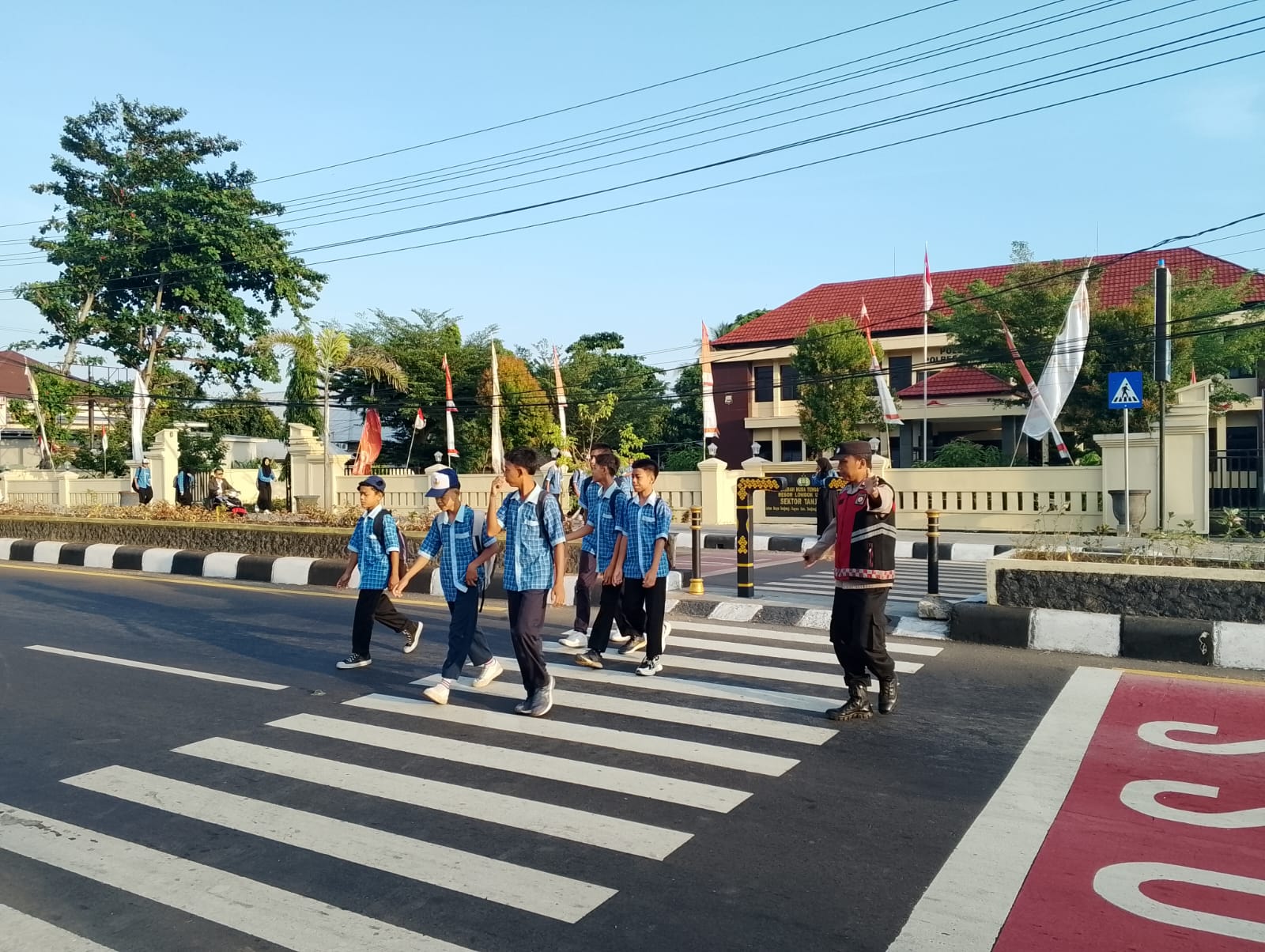 Kapolres Lombok Utara AKBP Agus Purwanta, S.I.K., melalui Kapolsek Tanjung AKP Remanto, S.H., menyampaikan imbauan kepada para pelajar serta orang tua yang mengantar putra-putrinya agar selalu mengutamakan keselamatan dan tertib berlalu lintas.
