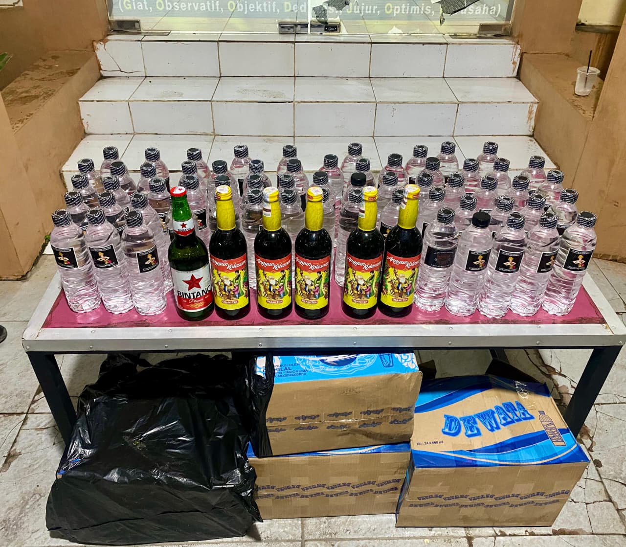 Dalam kegiatan tersebut, Tim Opsnal berhasil mengamankan puluhan botol miras tanpa izin, yakni 60 botol arak Bali ukuran tanggung, 1 botol bir Bintang, serta 5 botol anggur Kromosom dari beberapa warung yang berada di Kelurahan Tanjung, Nae, dan Dara.